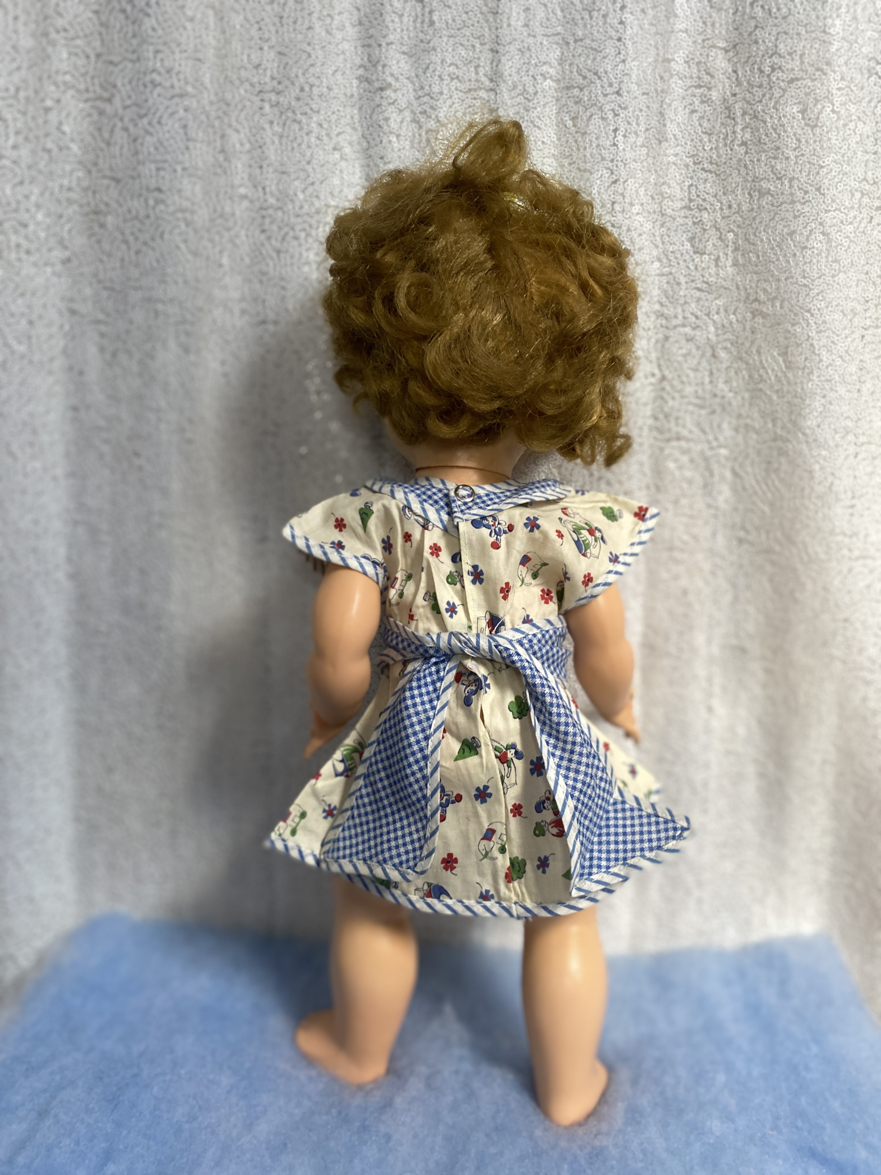 Blue trim pink ducks Pedigree Doll Pinafore 1950s Dress – up to 21 inches