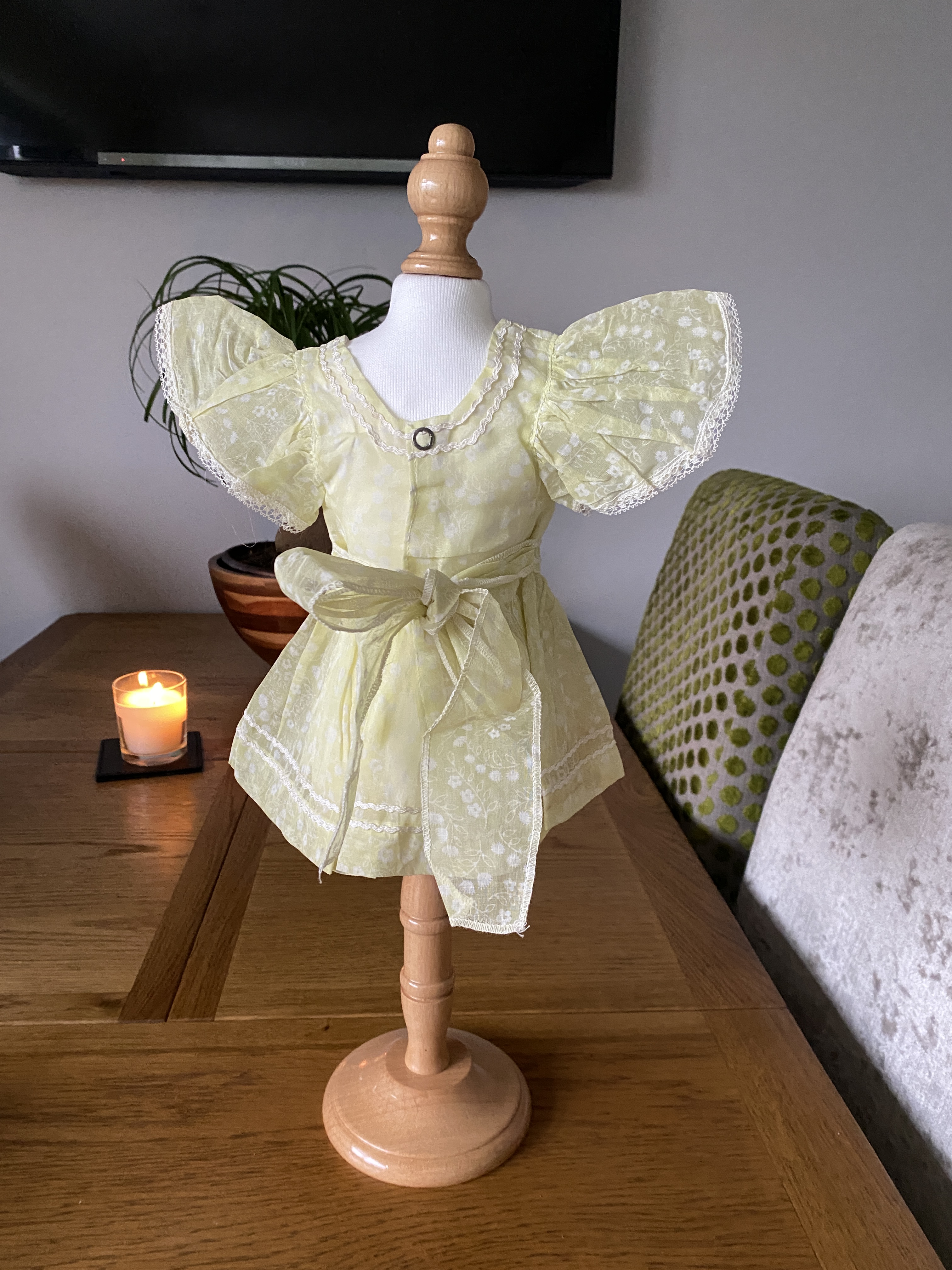 Dainty yellow floral 1950’s Pedigree Doll Dress – up to 12 inches