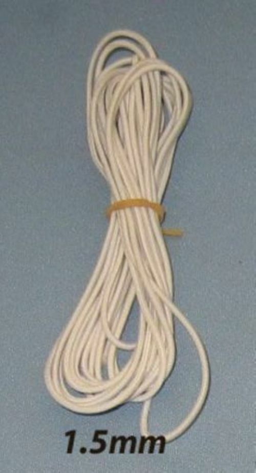 The 1.5mm elastic cord is usually our choice for re-stringing tiny/miniature dolls up to around 4 to 5 inches in height. This elastic cord has a multi stranded rubber core encased by strong woven polyester outer sheath. SOLD IN 3 METRE LENGTHS