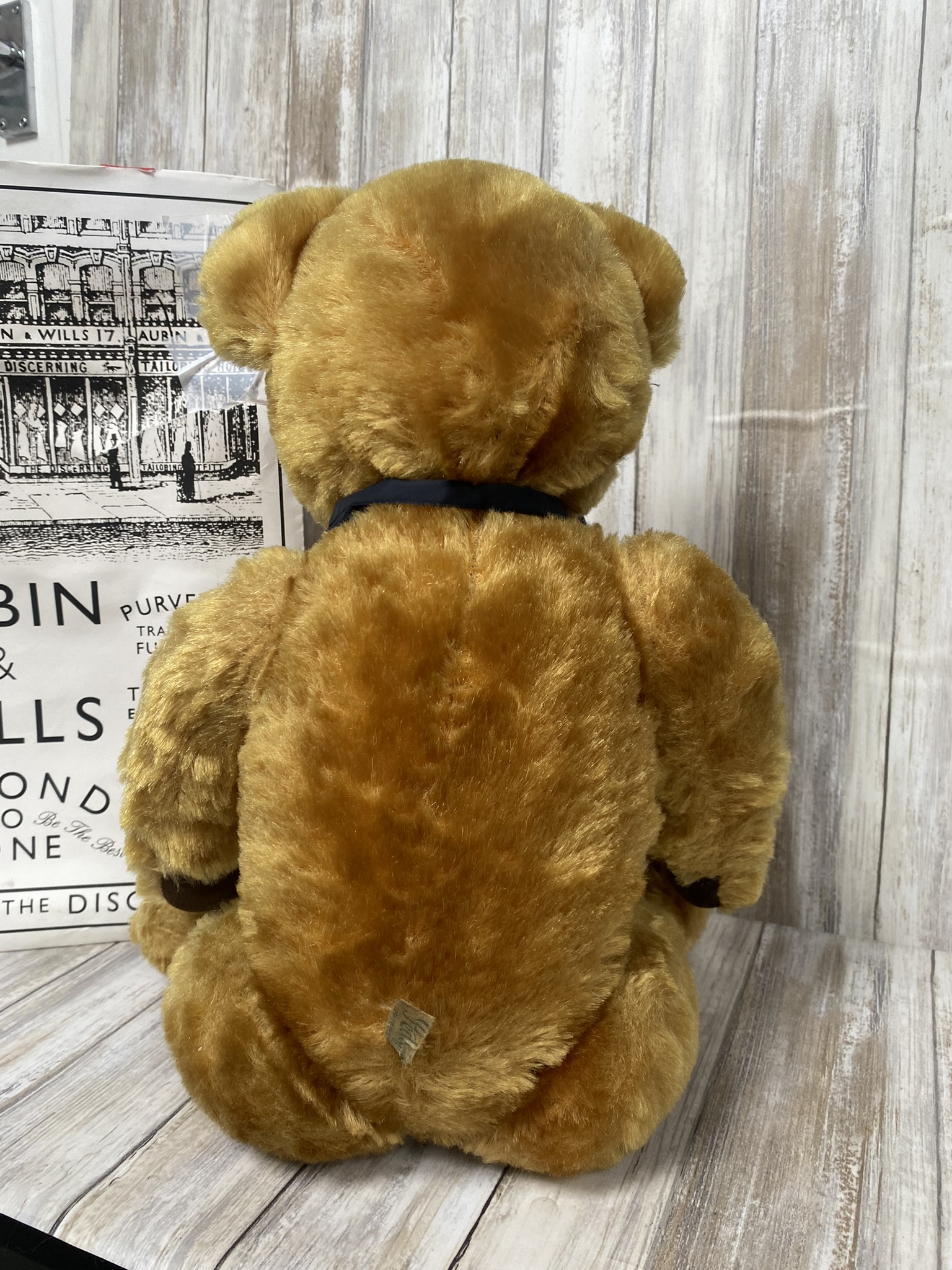 Ronnie is a rare find 1950’s antique Pedigree musical teddy bear with brass key wind up mechanism which plays “Three blind mice” perfectly!. Good clean sturdy condition for years, his fur is thick and golden. Bald areas around the back mechanism from play. No stains or odours. 14 inches in height. Ronnie retains his Pedigree label to his back. FREE UK SHIPPING