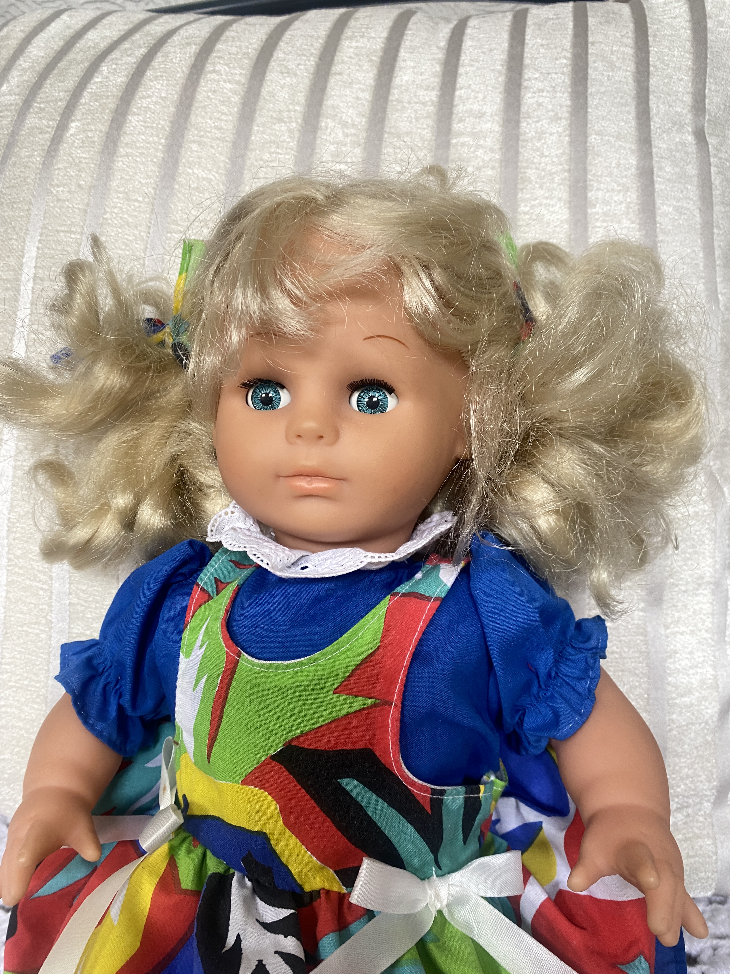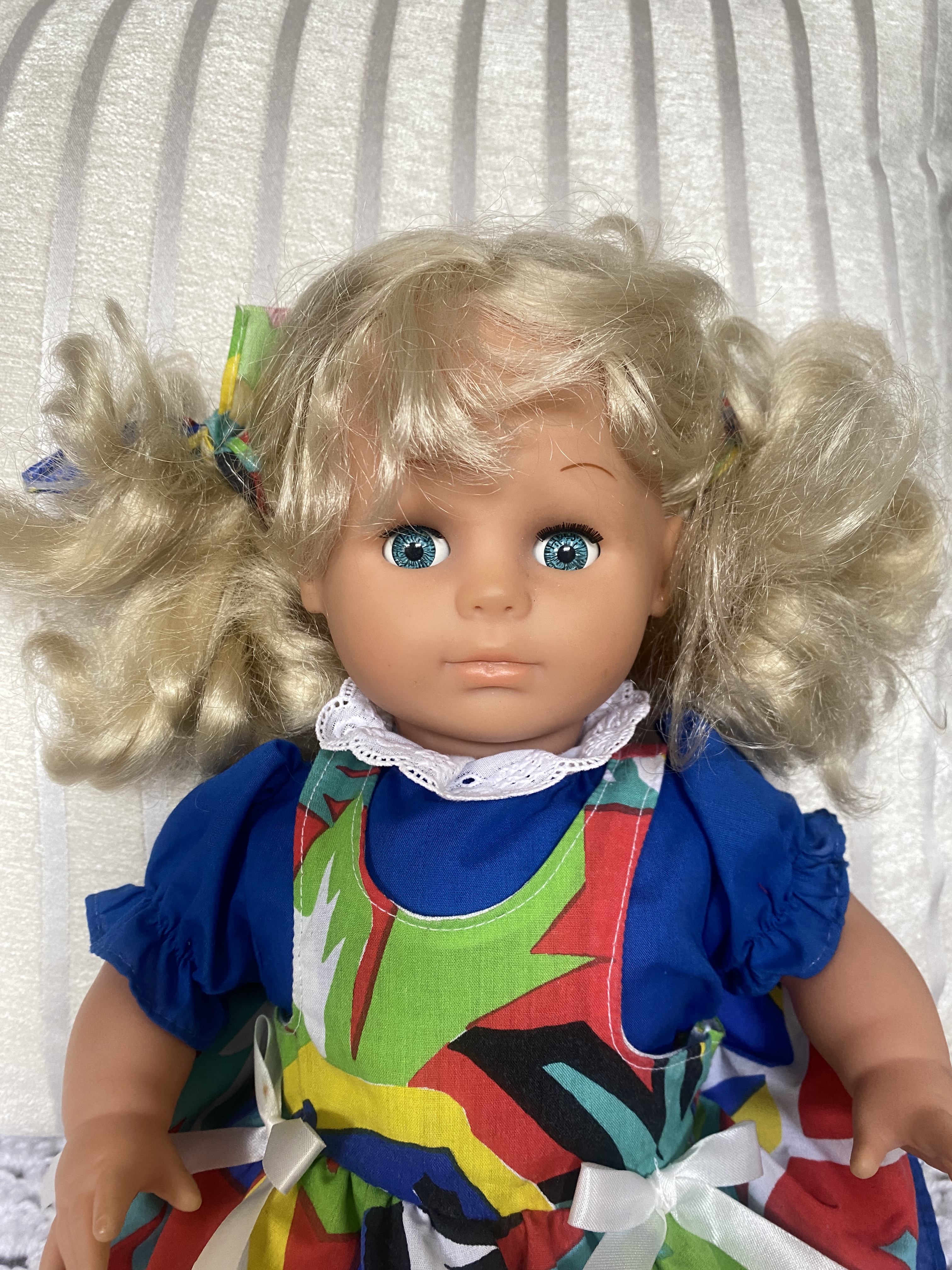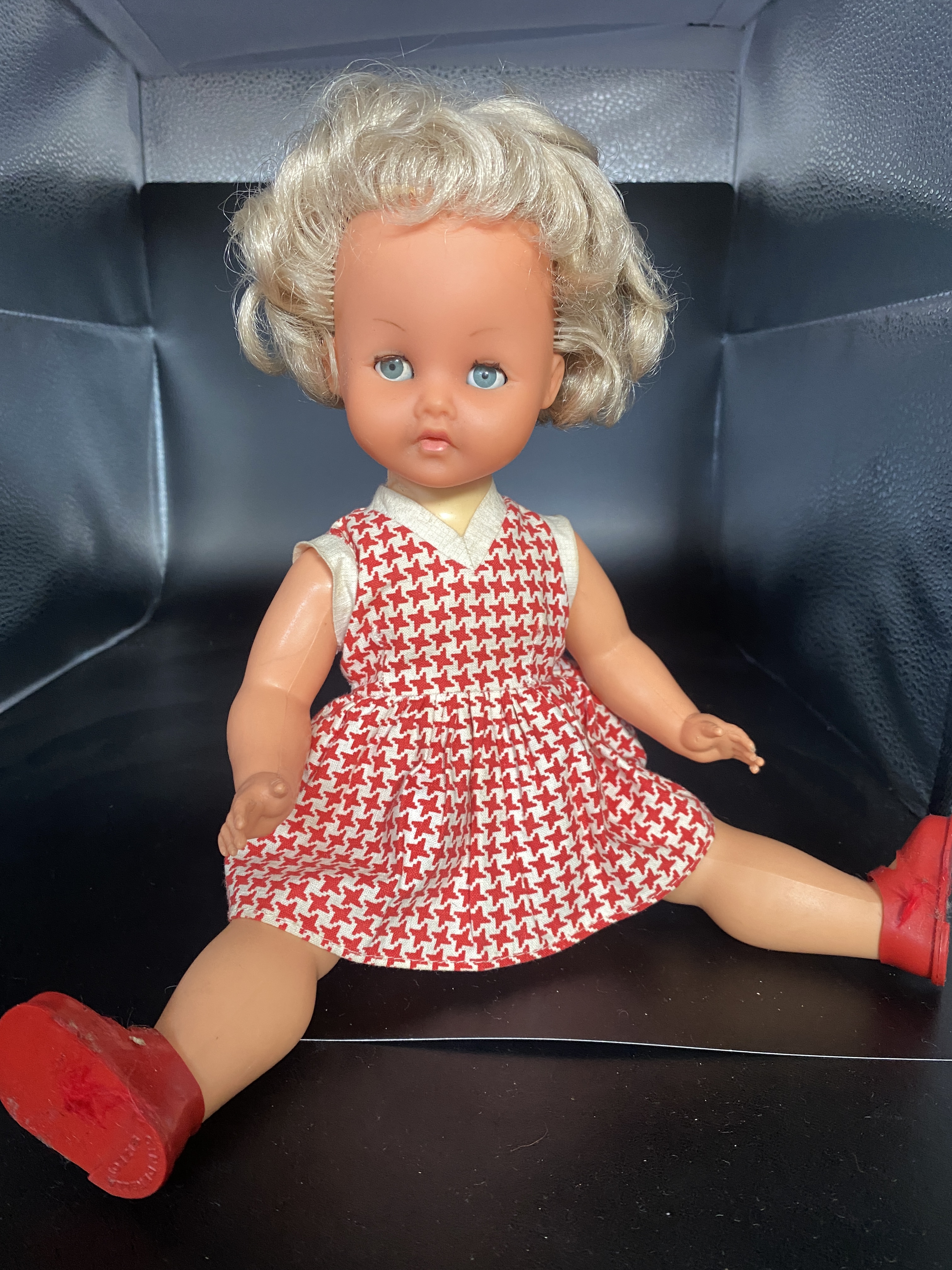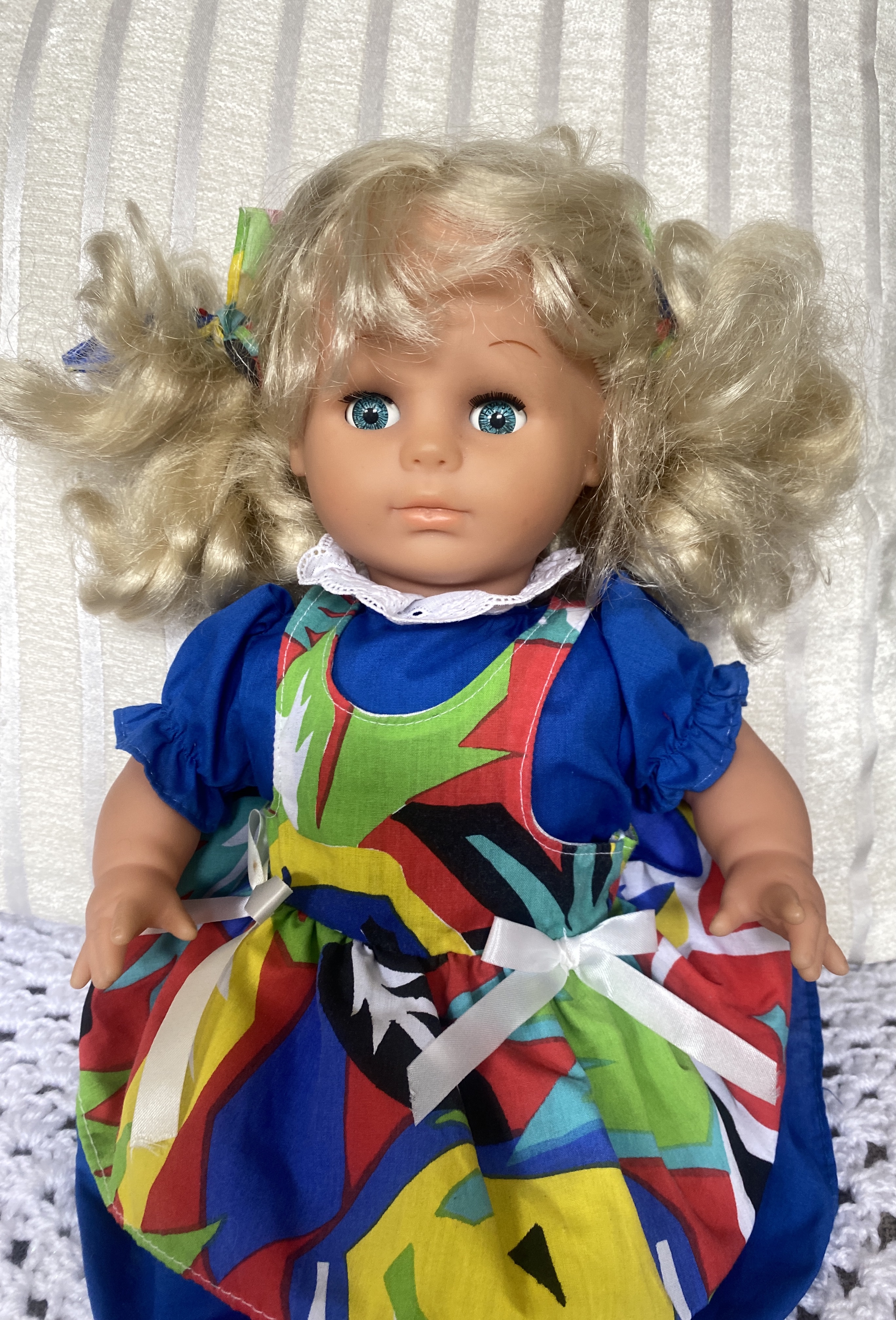 Alice is a circa 1970’s vintage British hand assisted walking doll who comes nicely dressed in her cosy knitted outfit. Approx 21 inches in height, she’s made from vinyl and plastic with blue sleep eyes, lashes and thick rooted hair. Good played with condition for her years. FREE SHIPPING (WITHIN THE UK ONLY)