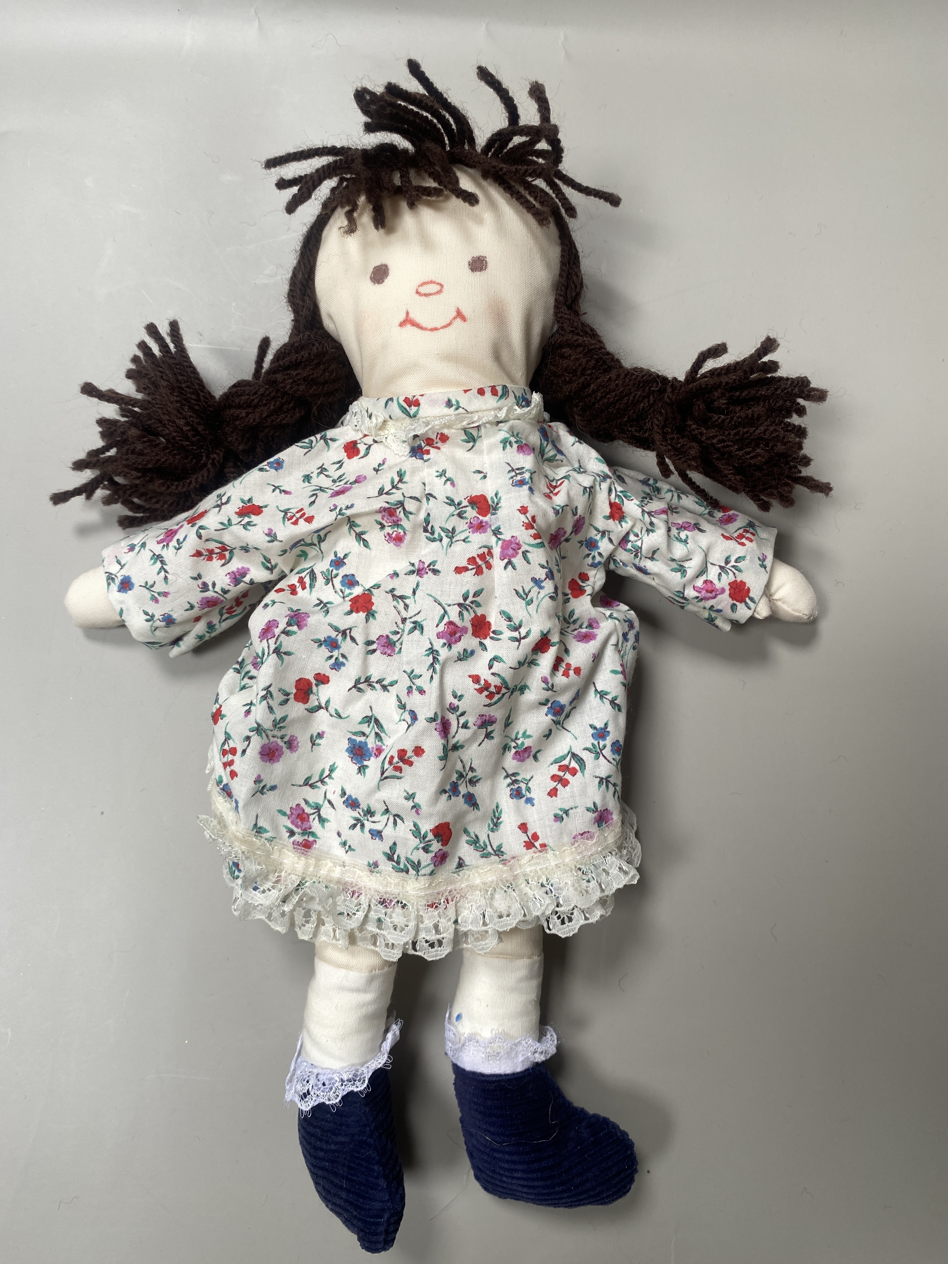 Jess is a delightful vintage handmade cloth rag doll. Approx 10 inches in height, she has smiley features, lovely complete outfit and thick woolly hair!.. FREE SHIPPING (WITHIN THE UK ONLY)