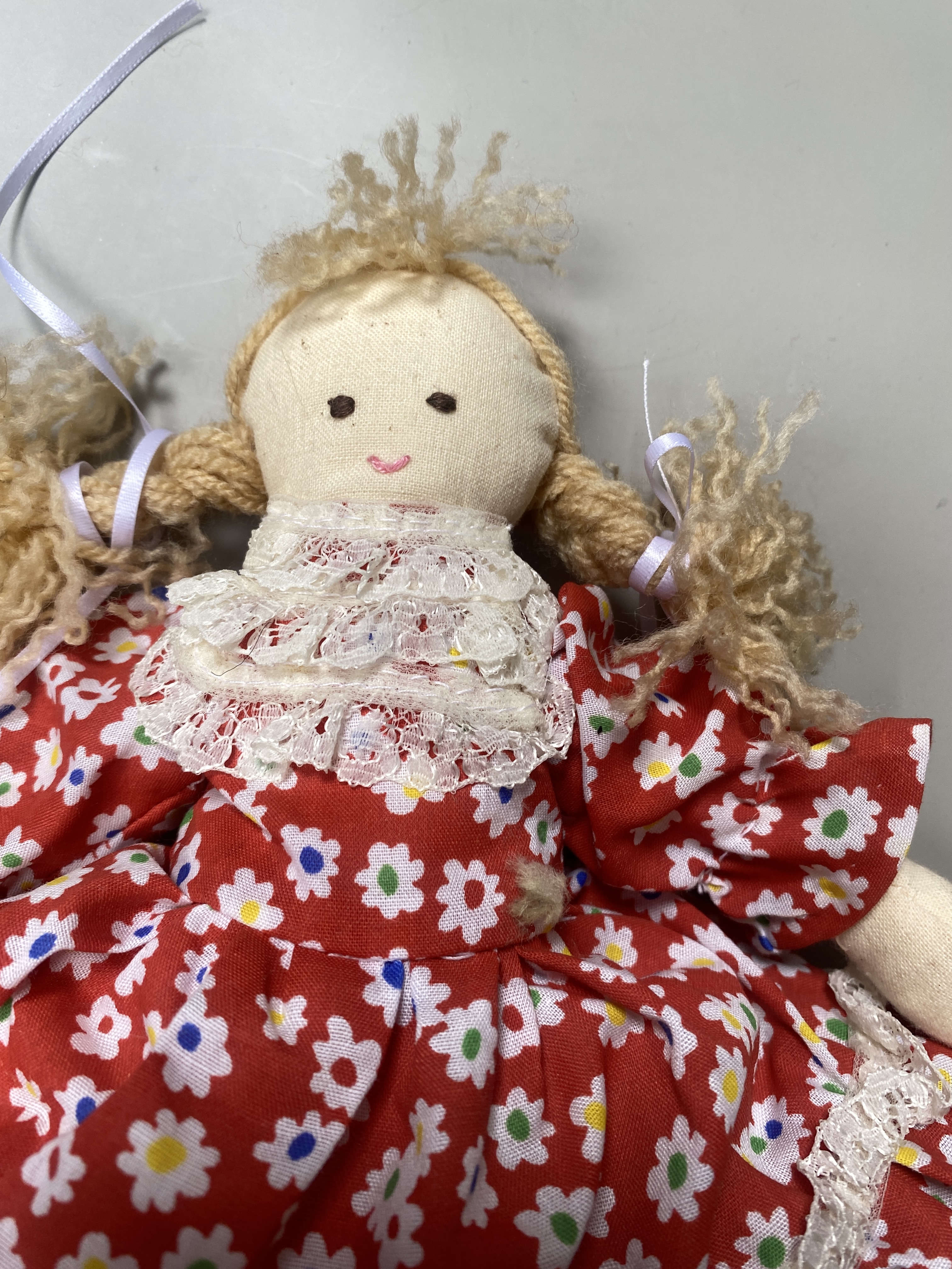 Sophie is a delightful vintage handmade cloth rag doll. Approx 10 inches in height, she has handsewn features, lovely complete outfit and nice woolly hair!.. FREE SHIPPING (WITHIN THE UK ONLY)